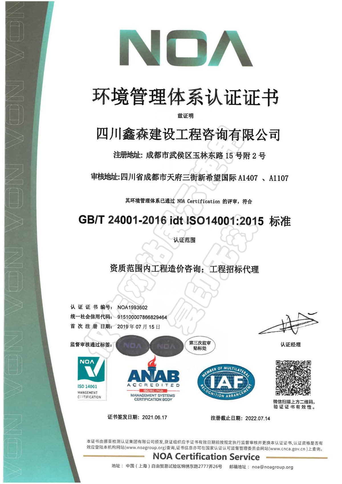 2022年环境管理体系认证证书-四川全过程工程咨询, 四川全过程咨询机构, 四川工程造价公司, 成都全过程咨询机构, 成都全过程工程咨询, 成都工程造价咨询公司, 成都工程造价公司, 四川全过程工程咨询, 四川全过程咨询机构, 四川工程造价咨询公司, 四川工程造价公司, 成都全过程咨询机构, 成都全过程工程咨询, 成都工程造价公司, 成都工程造价咨询公司