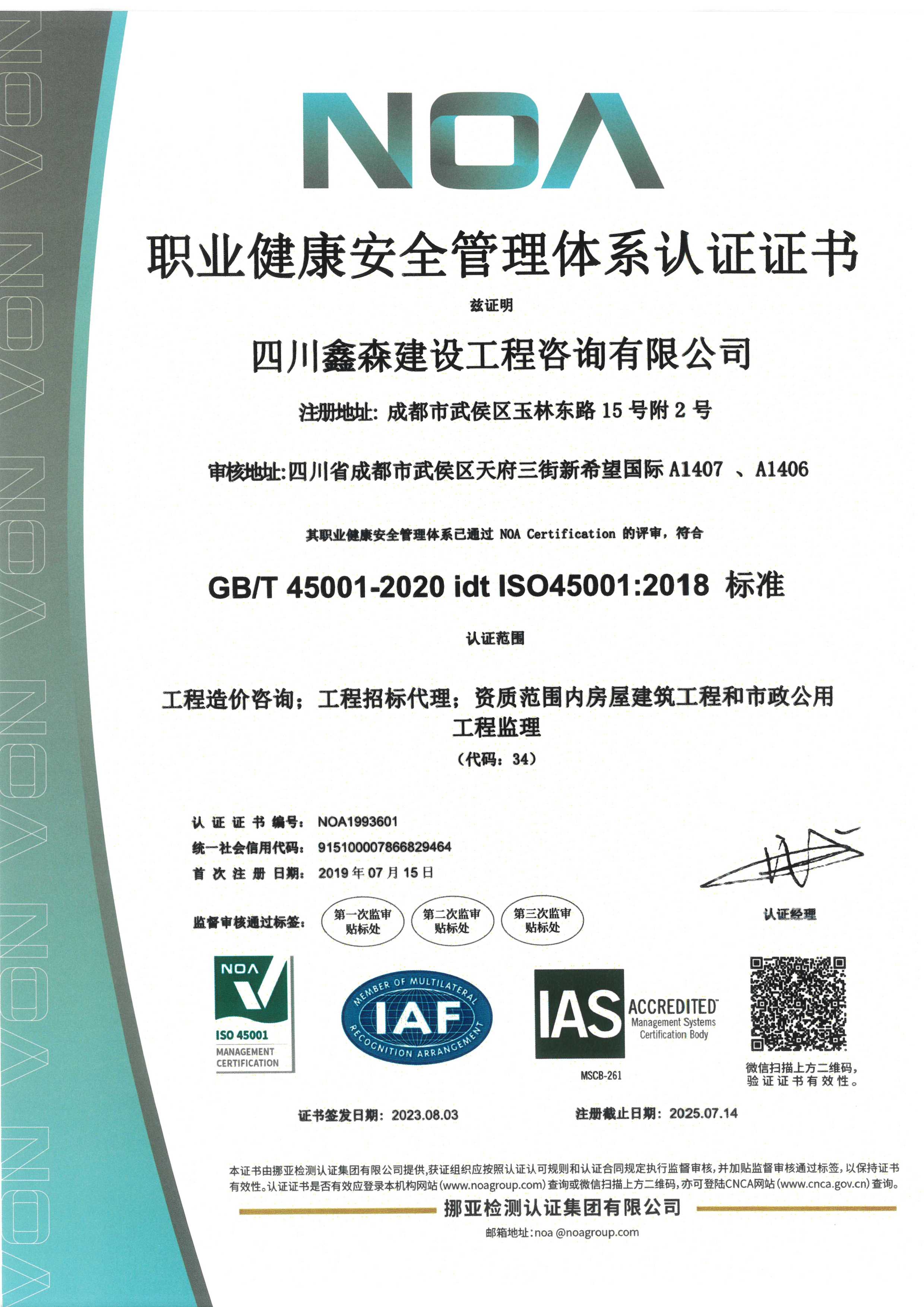 2023年职业健康安全管理体系认证证书-四川全过程工程咨询, 四川全过程咨询机构, 四川工程造价公司, 成都全过程咨询机构, 成都全过程工程咨询, 成都工程造价咨询公司, 成都工程造价公司, 四川全过程工程咨询, 四川全过程咨询机构, 四川工程造价咨询公司, 四川工程造价公司, 成都全过程咨询机构, 成都全过程工程咨询, 成都工程造价公司, 成都工程造价咨询公司