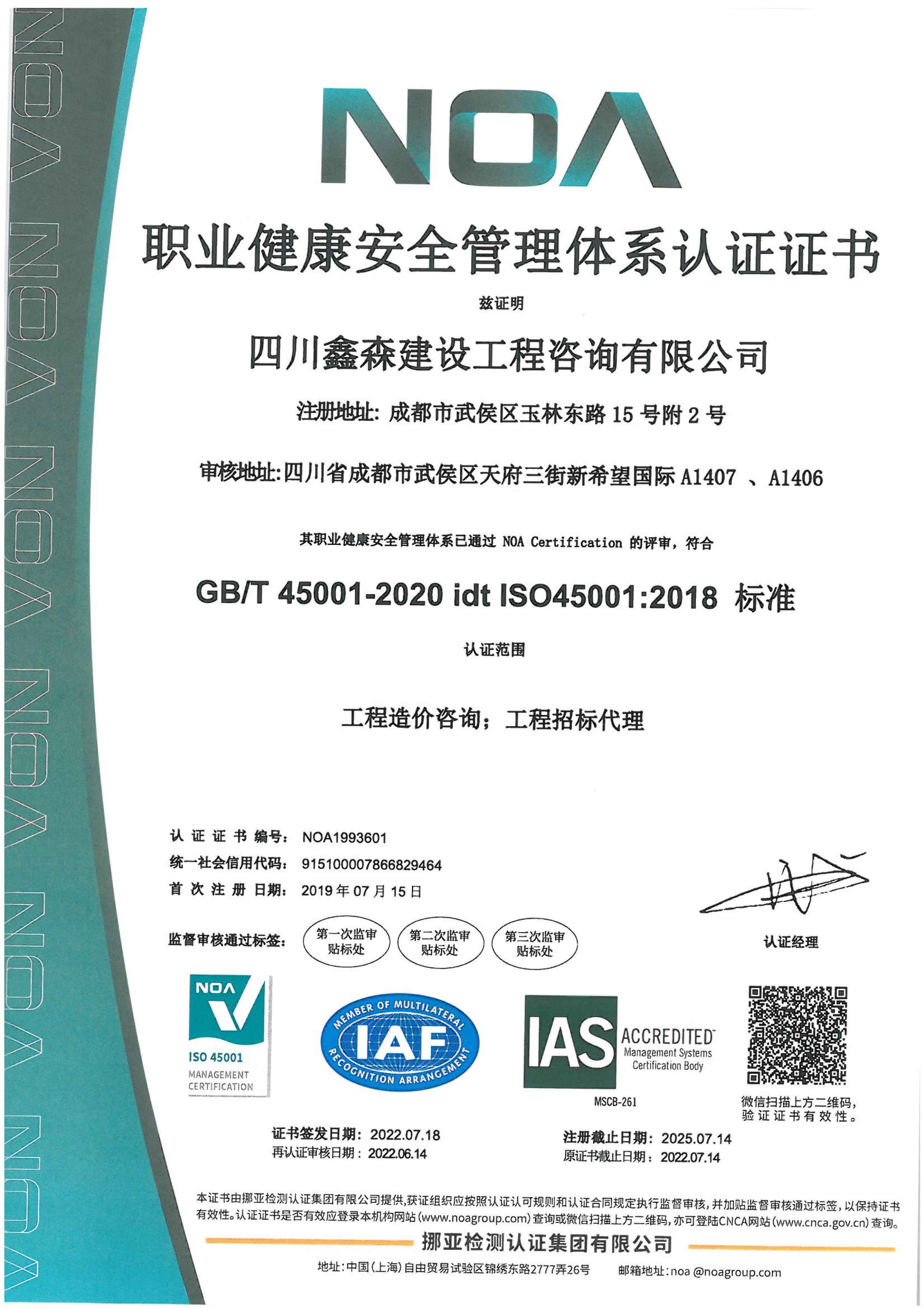 2022年职业健康安全管理体系认证证书-四川全过程工程咨询, 四川全过程咨询机构, 四川工程造价公司, 成都全过程咨询机构, 成都全过程工程咨询, 成都工程造价咨询公司, 成都工程造价公司, 四川全过程工程咨询, 四川全过程咨询机构, 四川工程造价咨询公司, 四川工程造价公司, 成都全过程咨询机构, 成都全过程工程咨询, 成都工程造价公司, 成都工程造价咨询公司